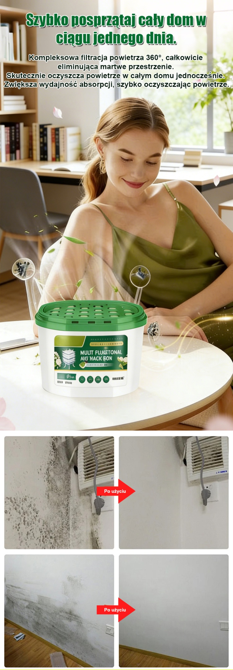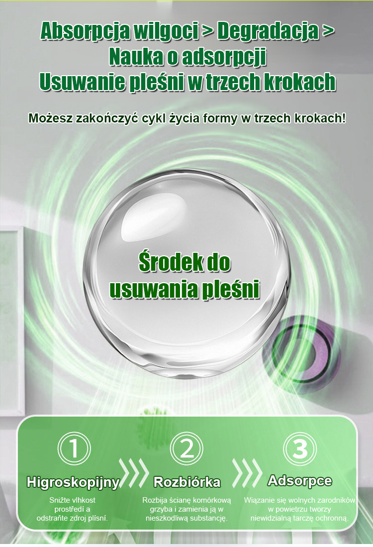✔ Najnowsza technologia aktywnego rozkładu, bez potrzeby podłączania do prądu, automatyczne usuwanie pleśni przez 24 godziny