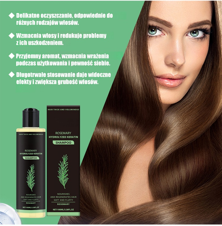 ✨ Ekstrakty roślinne z hydrolizowaną keratyną regenerują włosy, redukują łamliwość i wzmacniają cienkie pasma.