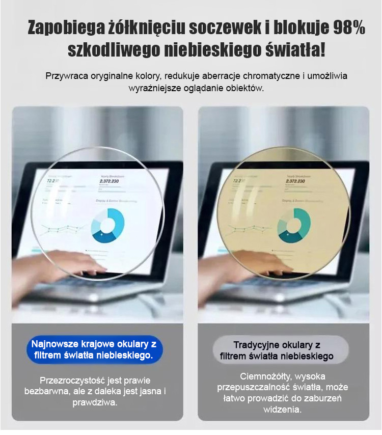 ✨Automatycznie dostosowuje ostrość ekranu, skutecznie filtrując szkodliwe niebieskie światło, zmniejszając zmęczenie oczu.✅Przywróć wzrok do jasności sprzed 20 lat