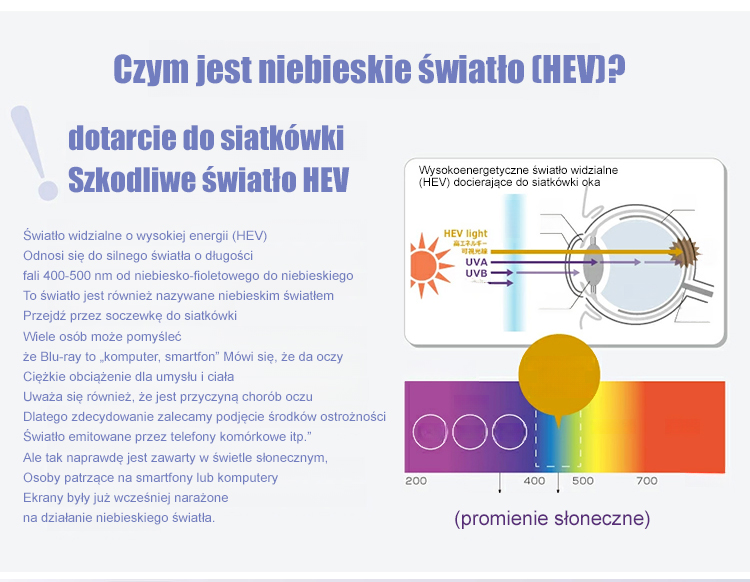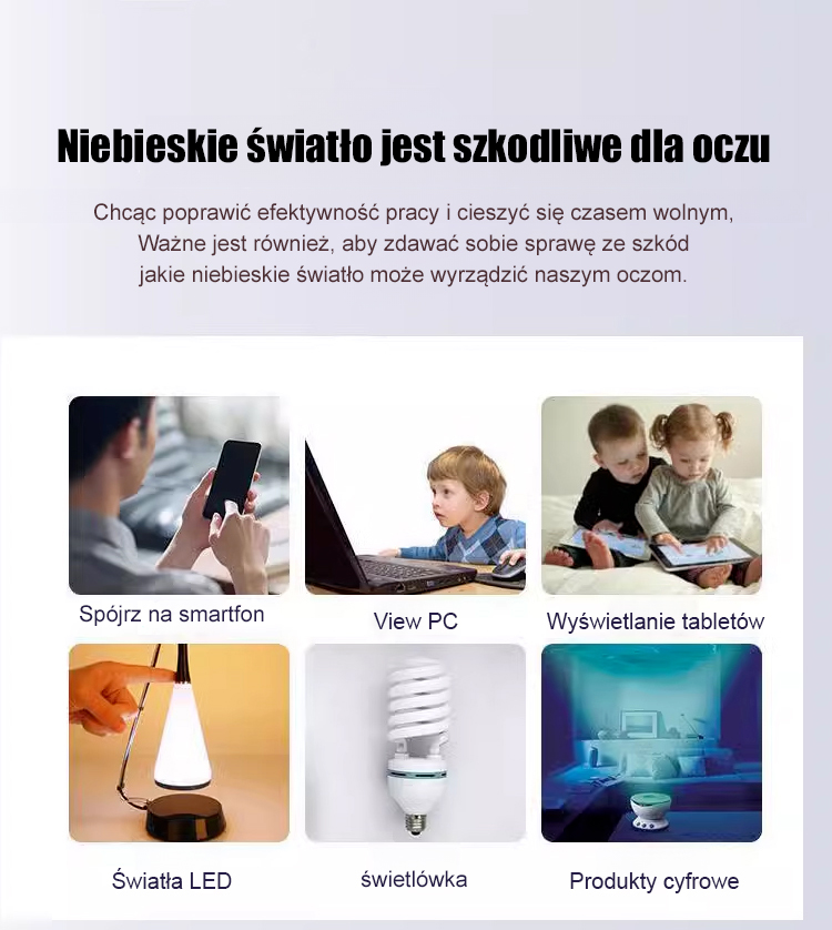 Automatycznie dostosowuje się w zakresie od 0 do 700 stopni i blokuje 99% szkodliwego krótkofalowego światła niebieskiego. Idealne do czytania i chodzenia.